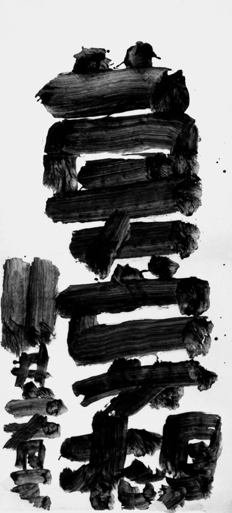 為了表達的需要,井上有一發(fā)明了將水性黏膠溶解加入碳粉的特制墨,使書法墨象渙然一新——
