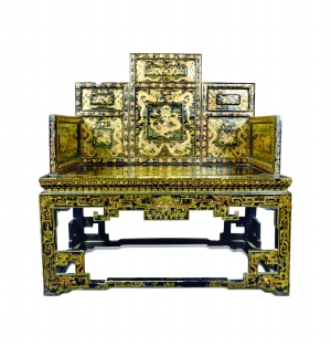 著名木器研究專家、故宮博物院研究員胡德生在對(duì)寶座制作年代進(jìn)行考證后認(rèn)為,這件寶座從整體造型、紋飾風(fēng)格、色彩及質(zhì)感上看,應(yīng)為清代康熙晚期的制品。
