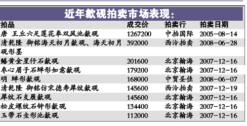 從市場了解到,不少普通歙硯的價格僅為兩三百元,貴則數(shù)千元,即使是國家大師作品價格也大多為數(shù)萬元,僅有部分精品價格稍高。