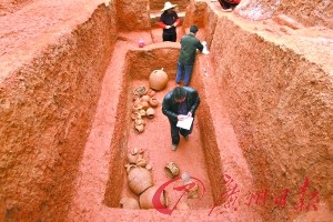 昨天上午記者接到報(bào)料,稱(廣州)黃花崗附近的一處工地上發(fā)現(xiàn)了很多古墓葬,年代以西漢、唐和南北朝為主,出土銅鏡、大型細(xì)嘴甕、陶壺、陶鈁等做工精致的文物器皿。