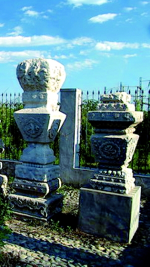 崔先生是北京市文物保護(hù)協(xié)會(huì)會(huì)員,他介紹,石五供是祭祀用具,包括香爐、寶瓶、蠟扦(即燭臺(tái))等?,F(xiàn)場(chǎng)可見,香爐西側(cè)漢白玉基座上1米多高的一個(gè)寶瓶和一個(gè)蠟扦不知去向。