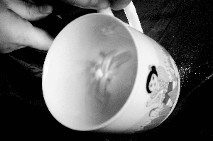 強(qiáng)光照射下,御溫杯內(nèi)層的金魚圖案透出杯面