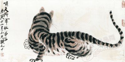 香港蘇富比將于4月6日在香港會議展覽中心舉行2010年中國書畫春季拍賣會,將于本次拍賣會露面的齊白石于1950年創(chuàng)作的作品《虎》成為藏界焦點。以“虎”為題材于齊白石而言十分罕見,此虎呈橫坐姿態(tài),很有性格地背對觀眾,但體態(tài)健碩,畫面簡潔自然,流露幾分童趣。該畫估價2800萬港元。
