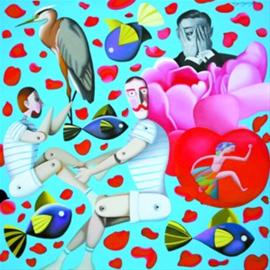 1956年出生,現(xiàn)為上海師范大學(xué)美術(shù)學(xué)院教授、中國美術(shù)家協(xié)會會員、中國油畫學(xué)會理事、上海美術(shù)家協(xié)會常務(wù)理事的王向明,已經(jīng)是香港蘇富比的“老朋友”了,此前曾獲全國青年畫展金獎、全國美展銀獎、臺灣“隔山”大獎賽優(yōu)秀獎等等,作品為中國美術(shù)館、上海美術(shù)館、福岡美術(shù)館以及海外私人收藏的他,是這次作品參與拍賣的唯一一位上海畫家,而在50多件現(xiàn)代拍品中,《向大師致敬·波波永遠(yuǎn)愛心蕩漾》是蘇富比在“嚴(yán)密”關(guān)注他的創(chuàng)作動態(tài)的前提下,最終選中的一幅作品:“上海其實一直都有文化淵源,人才輩出,但在文化市場上卻比較弱勢,周立波的脫穎而出對我啟發(fā)很深,我們不能太謙虛,要表現(xiàn)強(qiáng)烈的海派風(fēng)格,推崇上海文化、文明,這也屬于上海的藝術(shù)家之間的惺惺相惜。 ”
