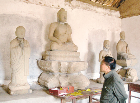 據(jù)了解,當(dāng)年“文革”“破四舊”時,上堡村村民為了保護文物,就將這五尊佛像埋到地下。近期,當(dāng)?shù)卮迕裼謱⒎鹣裢诹顺鰜?,安置在村中一所廢棄小學(xué)里。有關(guān)專家考察過村子的保護條件后,認(rèn)為該村不具備保護文物的基本條件和能力,于是決定將佛像運到博物館集中保管。得知文物部門欲運走佛像后,村民們表示,希望能夠把佛像留在村子里。