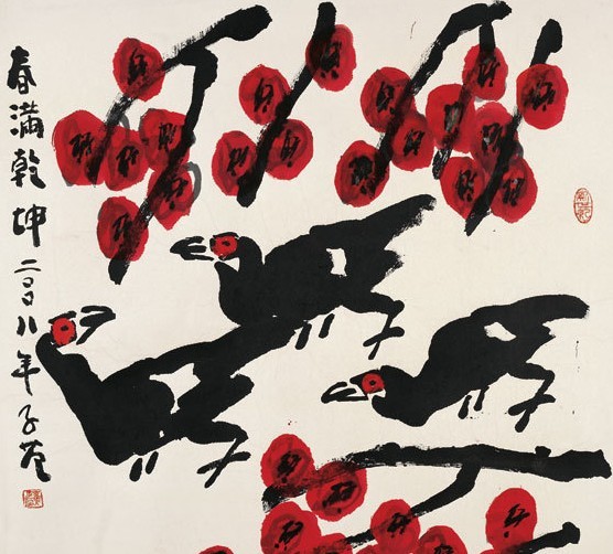 在藝術(shù)上崔子范先生始終致力于中國畫變革的探索,為傳統(tǒng)藝術(shù)的發(fā)展創(chuàng)新做出了重要貢獻。他自幼習書畫,早年曾受業(yè)于吳昌碩弟子張子蓮。后投筆從戎參加民族救亡運動,抗日戰(zhàn)爭時期他奔赴延安就讀于延安軍政學院和延安高級黨校,新中國成立后才又回到他所鐘愛的藝術(shù)領(lǐng)域。1952年崔子范先生經(jīng)由裱畫師劉金濤陪同拜謁齊白石老人,白石老人看了崔子范帶去的作品,在《公雞圖》上題贊“真大寫意”,其后崔子范經(jīng)常向白石老人請教畫藝,數(shù)十年苦心孤詣,用自己的藝術(shù)實踐對于中國傳統(tǒng)寫意畫做出了重要開掘。崔子范先生的作品立意新穎、構(gòu)圖精煉,厚實、簡練、大氣,個人風格面貌濃郁。晚年崔老依然筆耕不輟,勤于追索,高度關(guān)注中國畫發(fā)展前途與命運問題。通過重讀這批精品新作,無疑能激發(fā)我們反思中國畫藝術(shù)本體層面比如筆墨形式、生活創(chuàng)作等諸多問題,為今天的中國寫意畫發(fā)展提供啟迪。