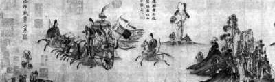 流傳有序的《洛神賦圖》摹本,海內(nèi)外共保存3卷,分別藏于美國(guó)弗利爾美術(shù)館、北京故宮博物院、遼寧省博物館。這3卷都是彩色圖卷,在構(gòu)圖和造型上基本一致,但從繪畫(huà)技巧和藝術(shù)水平來(lái)看,遼寧省博物館收藏的這一幅可謂獨(dú)領(lǐng)風(fēng)騷(見(jiàn)圖,局部)。北宋摹顧愷之的這幅畫(huà)卷長(zhǎng)641.6厘米,寬26.3厘米,為連環(huán)畫(huà)的形式。卷首的小楷賦文是曹植的《洛神賦》,它為我們引出一段悲涼而感傷的愛(ài)情故事。