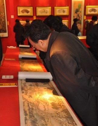 值得一提的是,溫家寶總理兩度深情寄語、有望于今年6月份在大陸合璧展出的《富春山居圖》的“完整版”高仿畫作也出現(xiàn)在展覽中。原畫在清代順治年間遭火焚,斷為兩段。前半卷被另行裝裱,重新定名為《剩山圖》,現(xiàn)藏浙江省博物館,被譽(yù)為浙江博物館“鎮(zhèn)館之寶”。畫的后段在解放前夕運(yùn)往臺灣,歸臺北故宮博物院收藏。 這里展出的高仿真“合璧”《富春山居圖》傳神的表現(xiàn)出原畫作者黃公望的巔峰之筆和中國傳統(tǒng)山水畫的藝術(shù)成就,吸引大批市民駐足觀看。