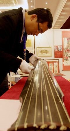 新華網(wǎng)天津頻道9月19日電 9月18日,演藝劇(節(jié))目及演藝收藏品專場拍賣會在天津開拍。經(jīng)過激烈競拍,166件拍品最終拍出近3200萬元。其中,起拍價380萬元的元代朱致遠(yuǎn)制的“龍吟”款仲尼式古琴最終以1400萬元成功拍出。(王青巖攝)