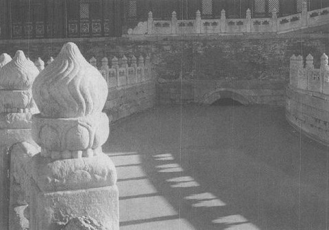 如當(dāng)太和殿的御路確定后,為使排水流暢,在鋪砌地面前還要確定水流方向并找好坡度,將雨水匯集到東西兩側(cè)的排水明溝,又稱荷葉溝內(nèi),引入院東南角的水溝門(mén),經(jīng)泊岸下的暗溝流入內(nèi)金水河。