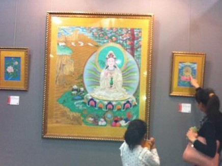 這次在上海展出的展品風(fēng)格多樣、內(nèi)容豐富,既有反映宗教文化的神筆巨制,也有描寫藏區(qū)人民生活和秀麗河山的閑趣篇章。