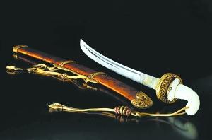 2012嘉德秋拍中備受關(guān)注的國(guó)寶——一件乾隆年間御制重器“金桃皮鞘‘天字十七號(hào)’‘寶騰’腰刀”昨天以4830萬元(含傭金)價(jià)格被一位澳門買家收入囊中。
