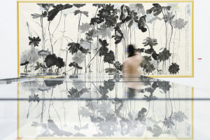 展出的饒公作品中,國(guó)畫包括融入西北地區(qū)實(shí)際觀感體驗(yàn)的西北山水、取法于敦煌線描的白描人物、常作題材巨幅墨荷、以中國(guó)傳統(tǒng)筆墨描摹海外風(fēng)光的景物寫生等;書法有饒公錄前人詩(shī)文之作、書自作詩(shī)詞、臨摹崖碑刻等內(nèi)容,也包括了今年6月29日饒公二進(jìn)西泠印社時(shí)在柏堂內(nèi)書寫的“播芳六合”4個(gè)大字,以及這次專門書寫贈(zèng)送給西泠印社的“蹋天一磨”書法條幅。