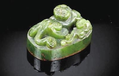 拍賣行手冊上說,這枚玉璽高2厘米,長4.5厘米,玉璽整體呈深綠色,上刻有“御書房鑒藏寶”六個字。