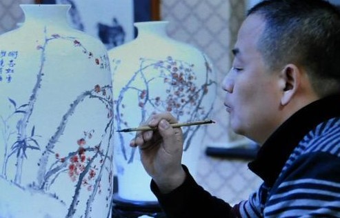 石家莊12月23日電(記者 翟羽佳)將中國四大發(fā)明之一的造紙術(shù)與源遠(yuǎn)流長的陶瓷文化有機(jī)地結(jié)合在一起,其文化特色令人難忘。23日,河北書畫家劉文杰展示了這與眾不同的瓷器作品——“大器遷安”。其八件器具圖畫為傳統(tǒng)手工造紙工藝典型流程場景的藝術(shù)再現(xiàn)。畫里人物栩栩如生,生動(dòng)地將中國傳統(tǒng)文化融入于瓷器美術(shù)之中。
