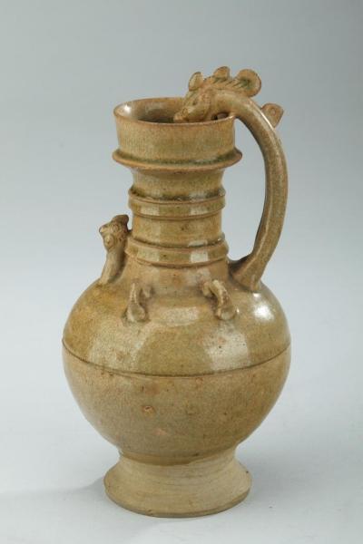 隋·湘陰窯青釉雞首龍柄壺