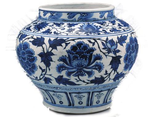 青花纏枝牡丹紋罐(元)