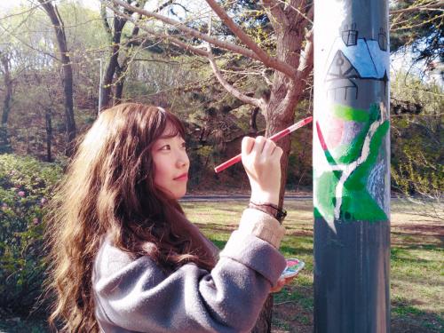 4月23日,沈陽晚報、沈陽網(wǎng)記者恰好在沈陽農(nóng)業(yè)大學(xué)的校園內(nèi)遇見了正在創(chuàng)作的年輕“藝術(shù)家們”。只見三四名大學(xué)生帶著顏料、工具,來到了現(xiàn)場。在各自選定了一個路燈桿后,一邊圍著路燈桿轉(zhuǎn)圈,一邊不斷拿著畫筆比比劃劃。“我是第一次畫,之前在平面上畫畫,現(xiàn)在路燈桿是立體的圓柱形,跟想象的還是有些差距的。”一名準(zhǔn)備作畫的男生說到,看著他皺著眉頭認真構(gòu)思的模樣,還真的有幾分大藝術(shù)家的風(fēng)范。