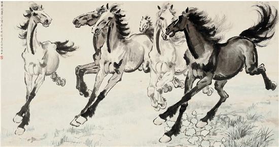 當(dāng)然徐悲鴻畫的馬最出色,符號(hào)性強(qiáng),是他的招牌畫。在徐悲鴻以前,中國畫歷史上畫馬都是以工筆畫為多,如唐代韓干、北宋李公麟、元代趙孟頫等,基本都以線描、白描表現(xiàn)為主,以大寫意畫馬始自徐悲鴻。