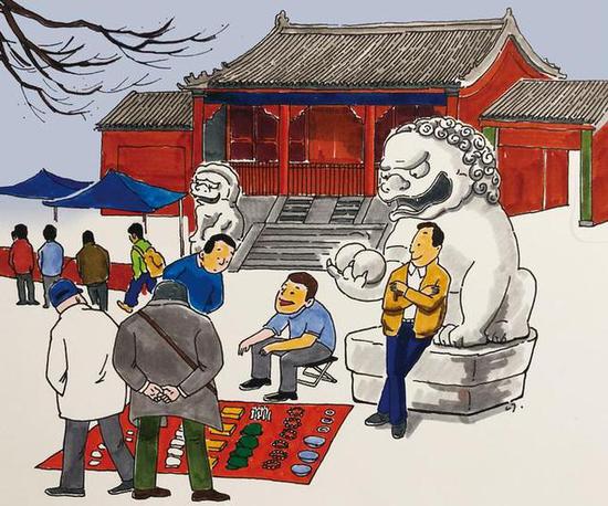 當然,22年來,作為上世紀末形成的收藏品市場,報國寺在北京文玩市場的分量不可小覷。它不僅以古玩玉器出名,更是全國錢幣收藏最大的集散中心,甚至是市場行情的晴雨表。徽章館、票證館、中國民間收藏館……報國寺在北京文玩市場的威名,可以從一句“周四報國寺,周末潘家園”中品出端倪。