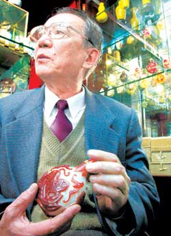 “作為古玩世家的傳人,我希望有生之年能在這個行業(yè)里體驗一下人生的真正價值?!焙诶辖忉尞?dāng)年做出決定時的心態(tài)。從1989年黑老在最初的試點古玩行“勁松舊貨市場”(北京古玩城前身)租的一間不到8平方米的小鋪子起,14年過去了,如今他在古玩城內(nèi)經(jīng)營著一間40多平方米的古玩鋪,“我希望可以將自己的余生致力于鼻煙壺的學(xué)術(shù)研究,讓更多的國人了解鼻煙壺的藝術(shù)價值與歷史文化?!?br/>