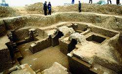 記者在考古現(xiàn)場看到,這座大型多室墓坐北朝南,共有前室、兩個側(cè)室和兩個后室,共五個墓室,加上墓室前方的一段甬道,格局頗似“五室一廳”。墓室長約7米,寬約5米,墓室底部距地面3.7米,全部為繩紋磚所砌。在前室通向后室的兩條甬道上方,兩個拱形的“船篷頂”還完好地保存著。考古專家說,一般前室上方應是穹廬狀頂,但開掘時此墓已被盜過,“穹廬頂”被破壞。在這座大型墓葬中共發(fā)現(xiàn)4具尸骨,其中墓主人尸骨位于前室,一個側(cè)室中的尸骨頭骨較小,似是女性,估計應是墓主人的妻妾,后室中兩具尸骨剩余較少且比較凌亂。