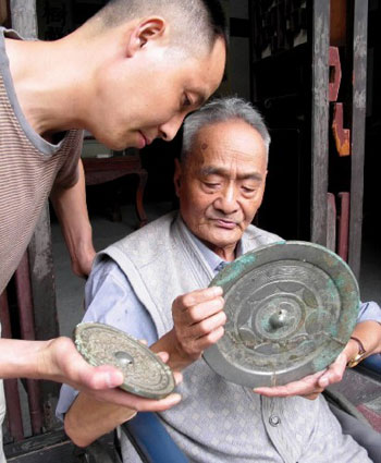 7月26日,喬德光老人向博物館工作人員介紹一面戰(zhàn)國(guó)時(shí)期的銅鏡。當(dāng)日,四川文物總店顧問、文物鑒定專家喬德光專程從成都來到新都,將收藏幾十年的戰(zhàn)國(guó)、西漢、唐代的銅鏡捐贈(zèng)給新都楊升庵博物館,其中戰(zhàn)國(guó)時(shí)期的銅鏡直徑為22厘米,是銅鏡中的瑰寶。2002年,喬德光老先生就曾向新都楊升庵博物館捐贈(zèng)200面戰(zhàn)國(guó)、漢、唐時(shí)期珍貴的銅鏡和16根帶鉤,同時(shí)捐獻(xiàn)的還有瓷器、字畫共計(jì)150余件。(新華社)