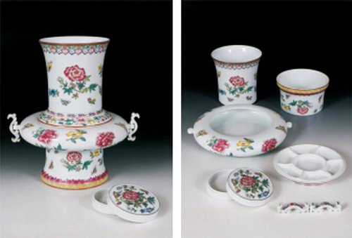 粉彩蝶戀花組合式花瓶文具